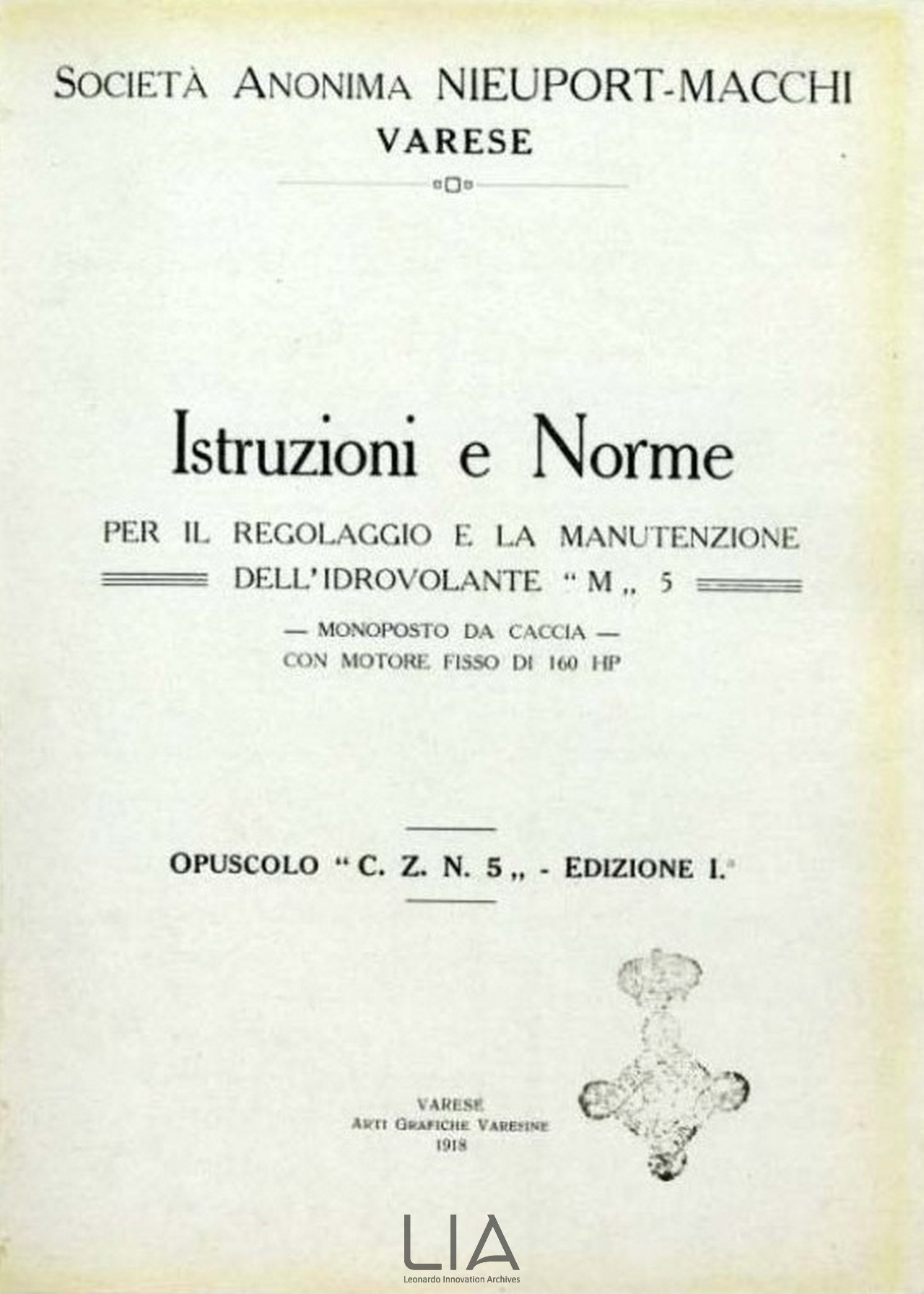 Nieuport-Macchi M.5 - manuale di istruzioni e norme