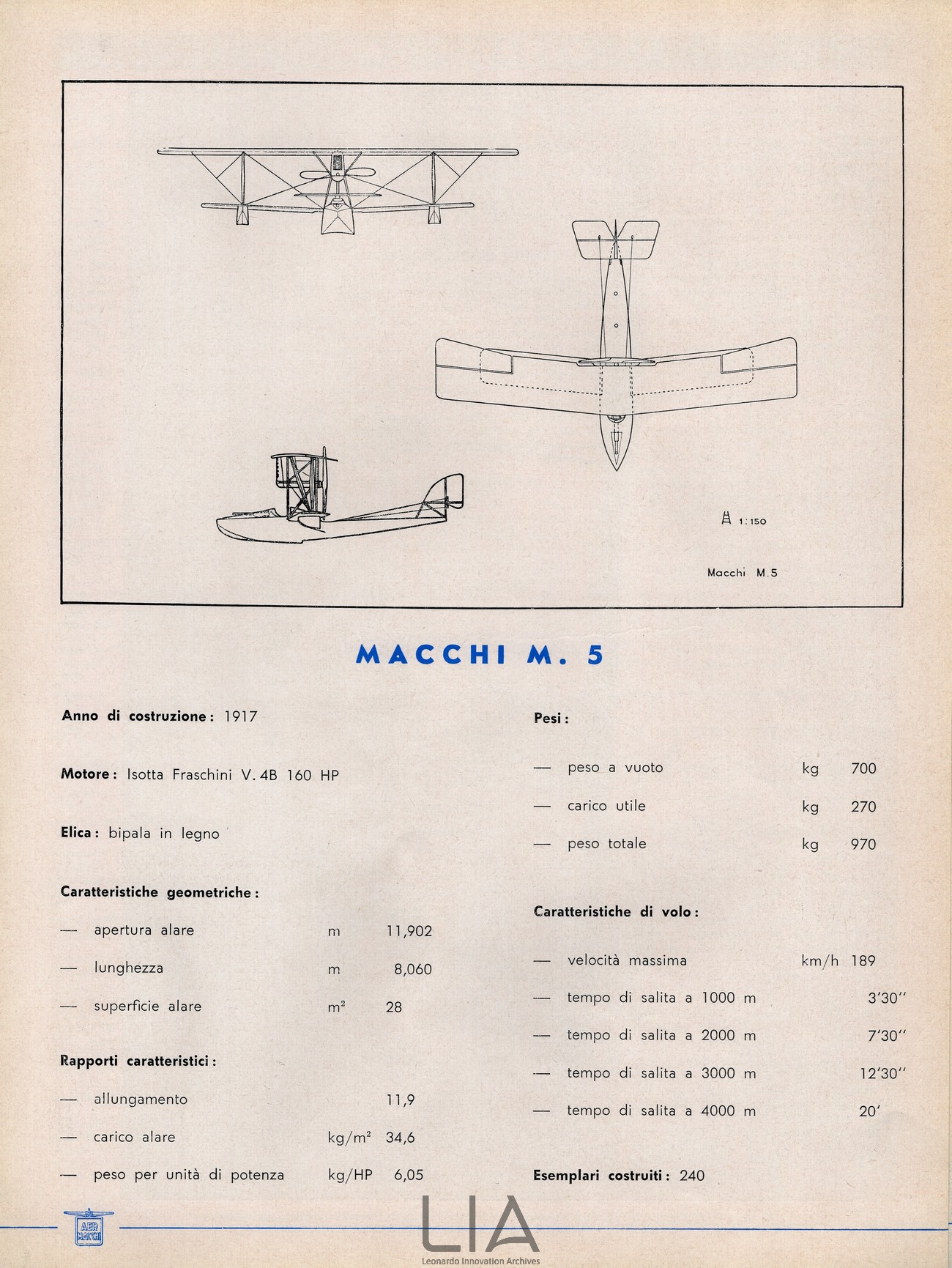 Nieuport-Macchi M.5 - scheda tecnica con disegno del trittico
