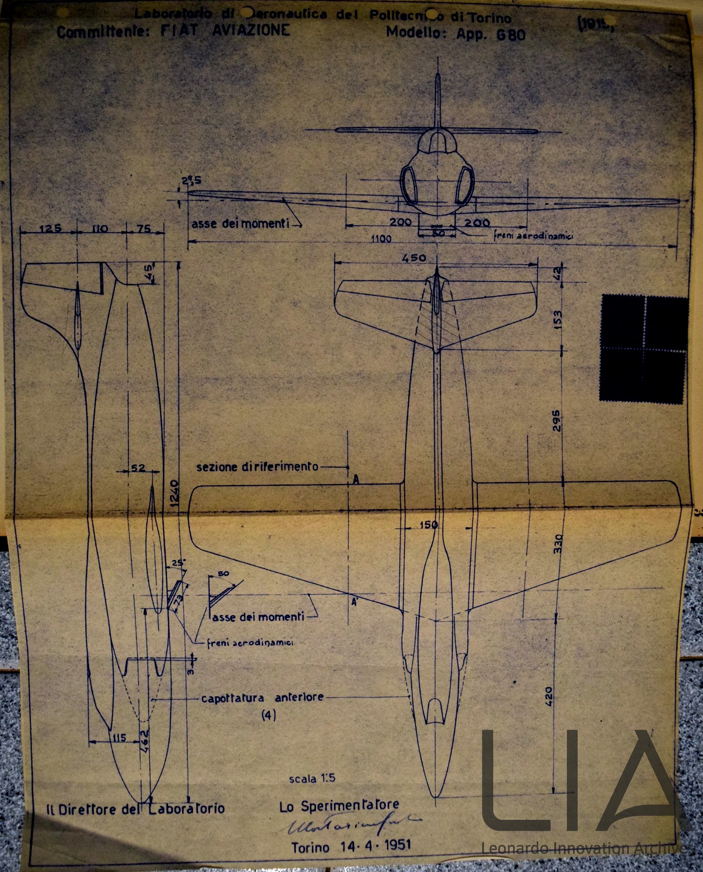 Il prototipo del G 80 volò ad Amendola il 9 dicembre 1951 pilotato dall’ing. Vittore Catella. L’aeroporto di Amendola fu scelto in quanto la pista Aeritalia di Torino non disponeva di sufficiente lunghezza.