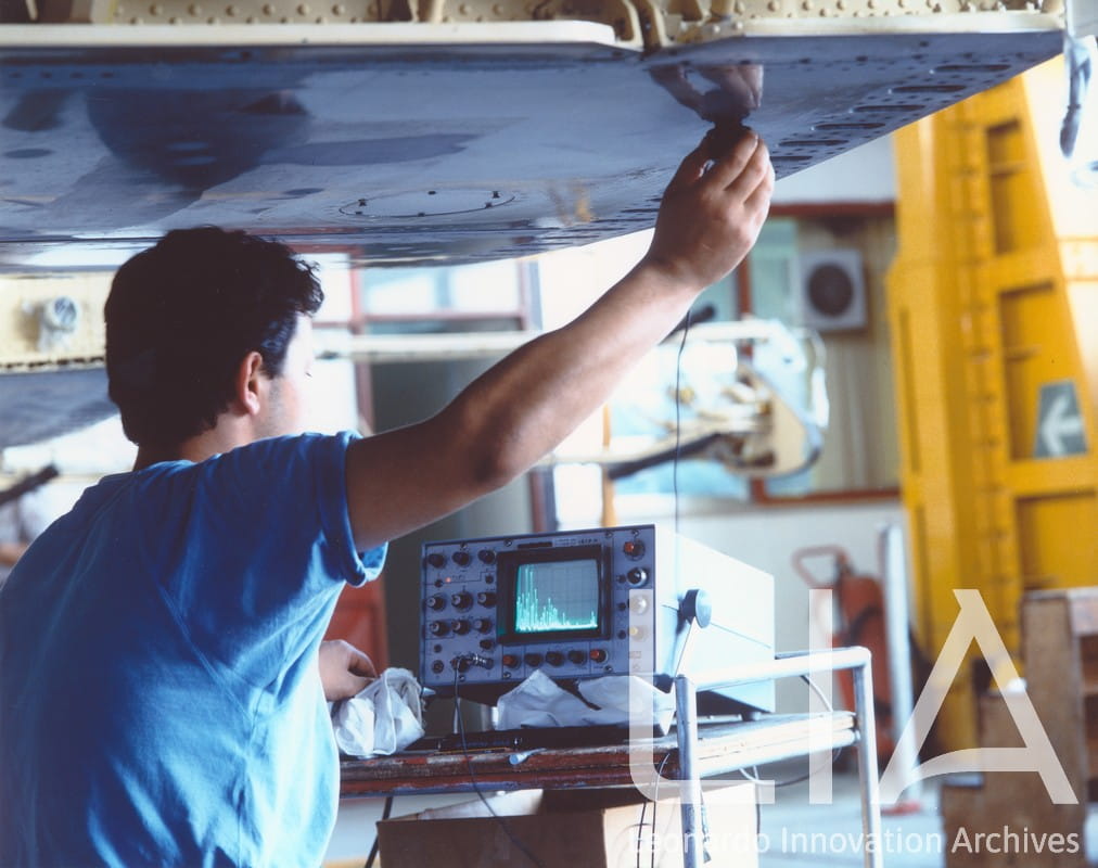 Breguet Atlantic - tecnico esegue controllo non distruttivo