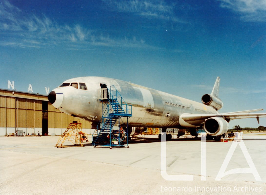 - in primo piano Douglas DC-10 68059, primo DC-10 modificato da Passeggeri a Cargo Merci a Tessera Venezia. In questa foto in hangar C sono in corso le operazioni per la realizzazione dell'installazione del nuovo portellone laterale.