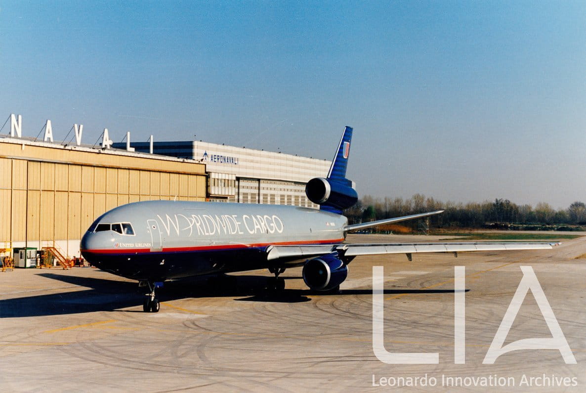 Conversione cargo di due Douglas DC-10 con livrea United Airlines all'interno dell'Hangar C di Venezia Tessera