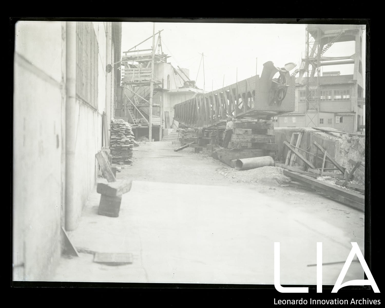 Parte di WASS - Operaio di fronte alla catapulta "Luigi Orlando" in costruzione