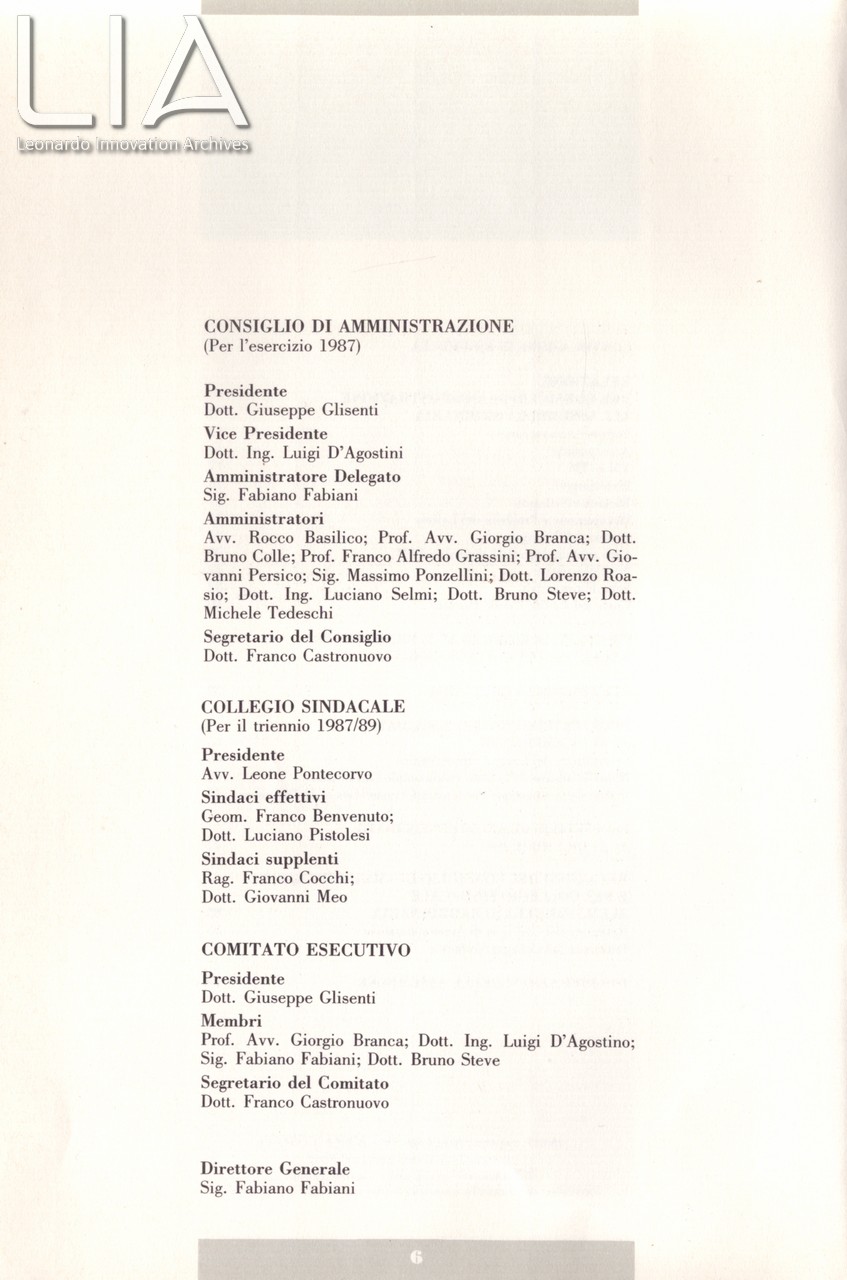 Cariche sociali per l'Esercizio 1987