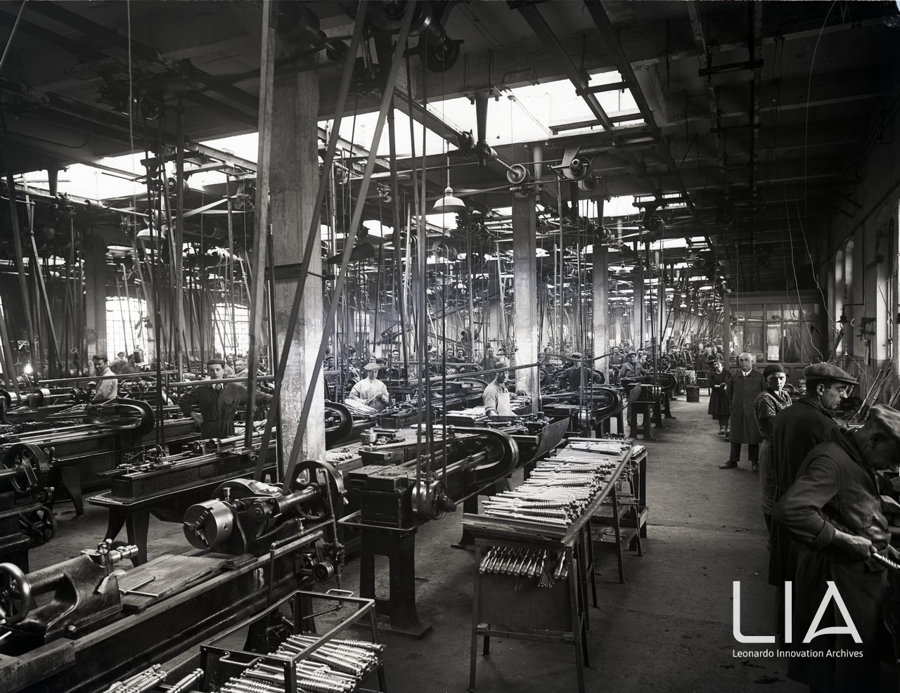 Maestranze al lavoro nella prima sede dello stabilimento della Breda Meccanica Bresciana in Via Cadorna a Brescia; 1924-1931