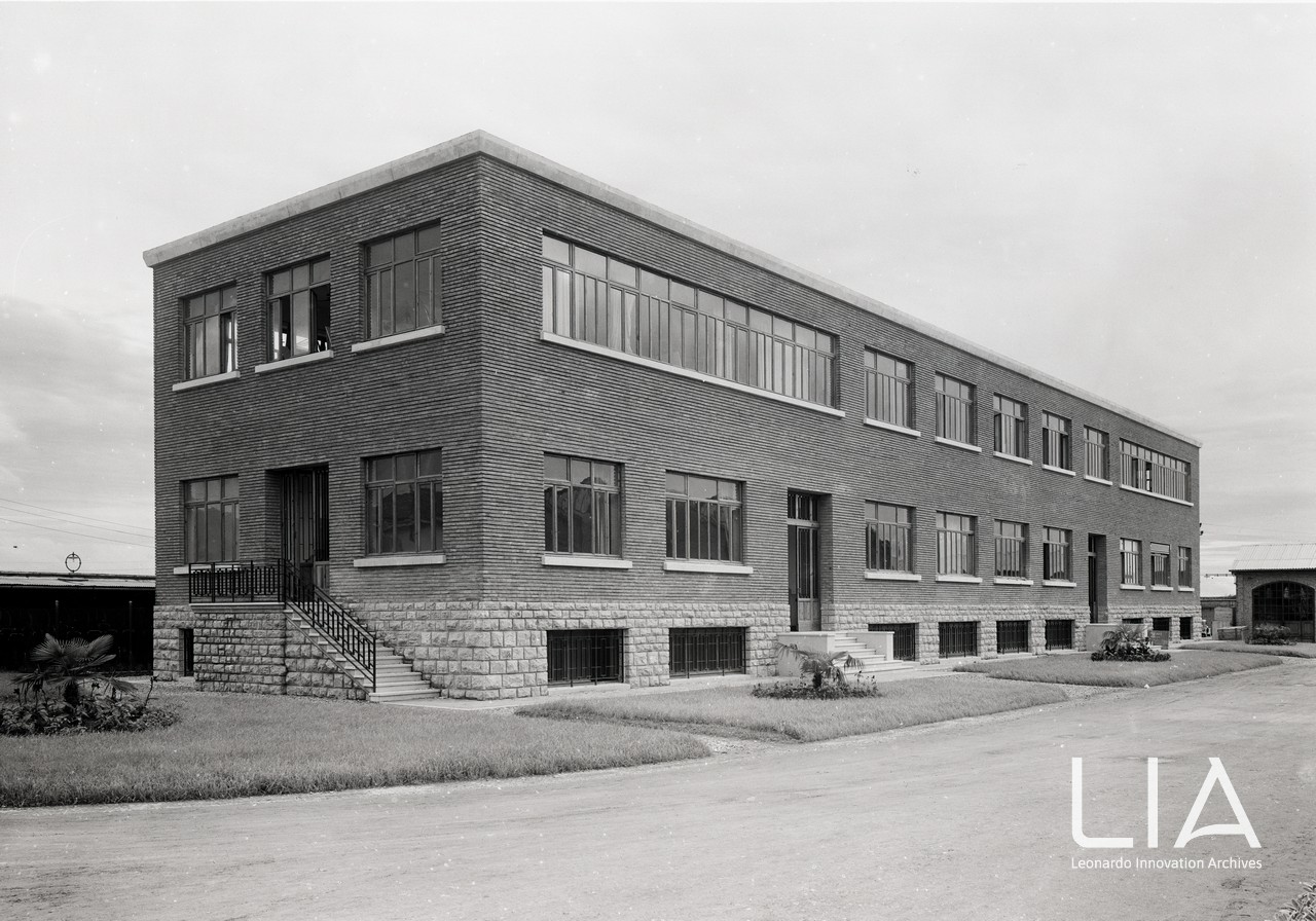 Esterno dello stabilimento nella sede della Breda Meccanica Bresciana di Via Lunga a Brescia, Palazzina ufficio studi e direzione; 1935 circa