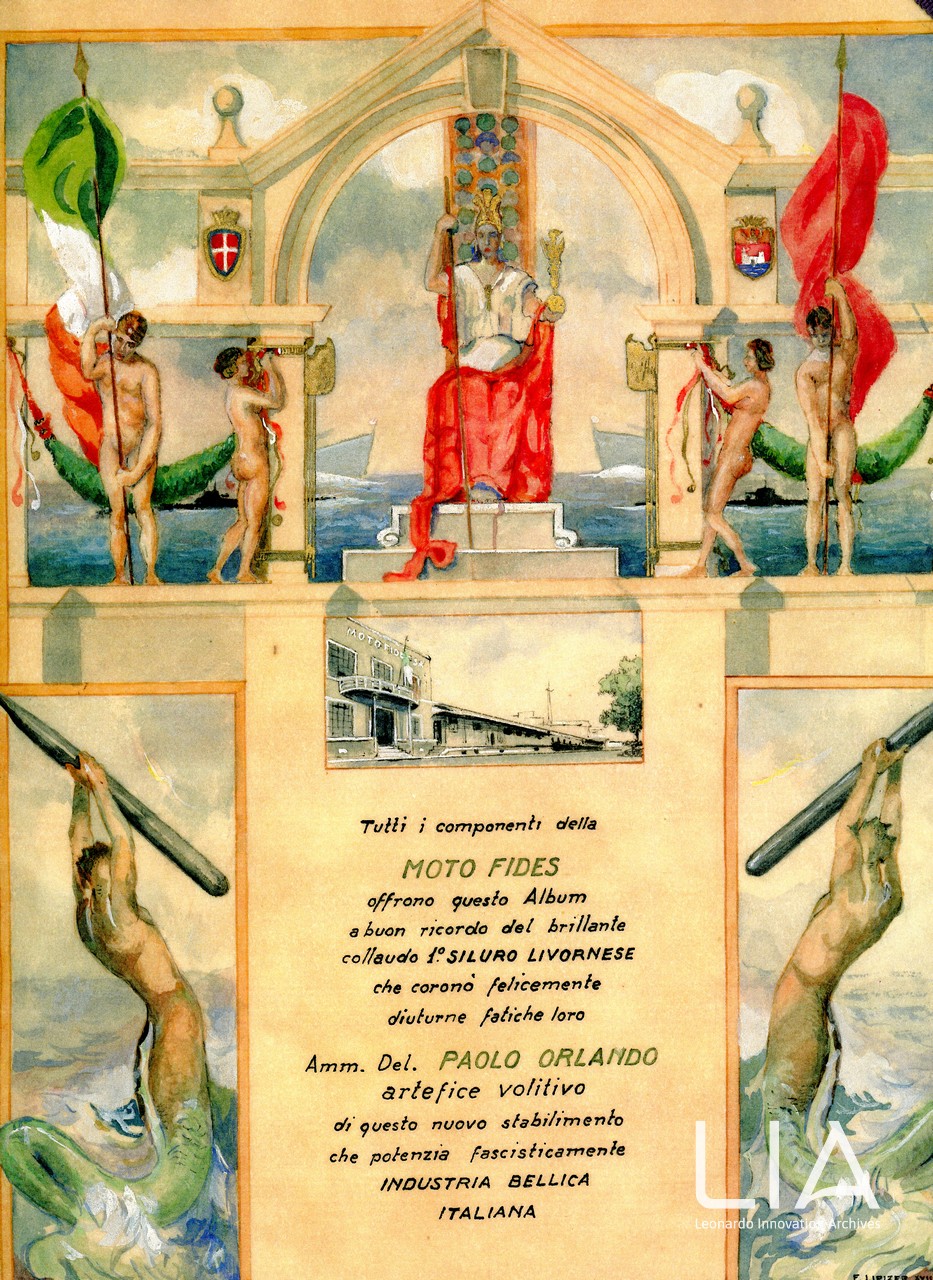 Copertina dell'album celebrativo per il primo siluro prodotto a Livorno dalla Moto Fides