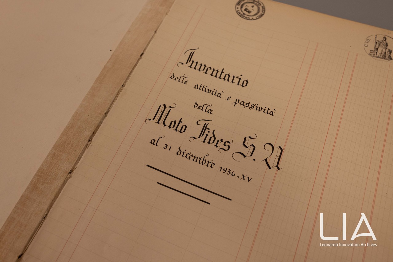Frontespizio del Libro inventario della Moto Fides; 1936