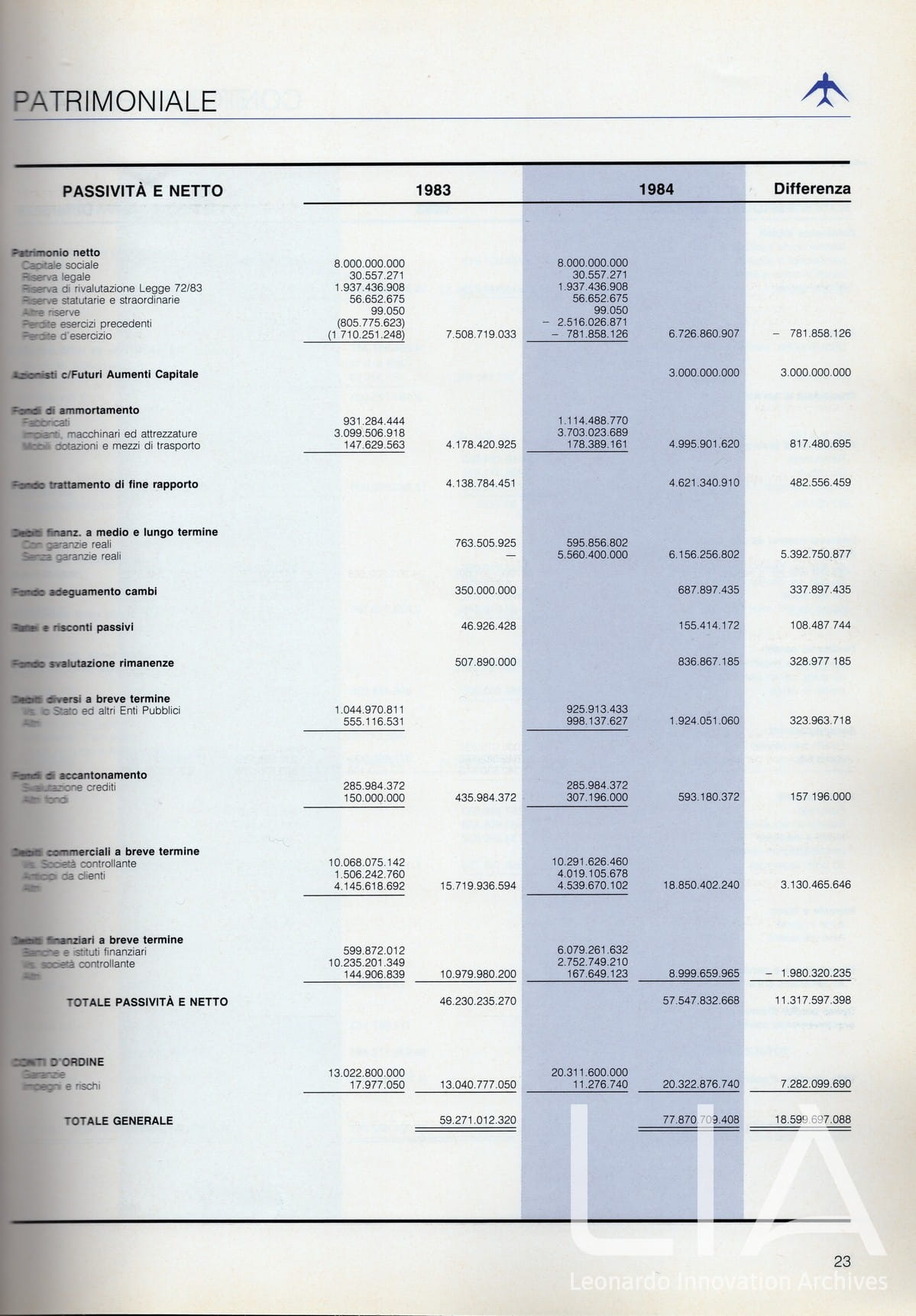 Officine Aeronavali Venezia - relazione bilancio esercizio 1984