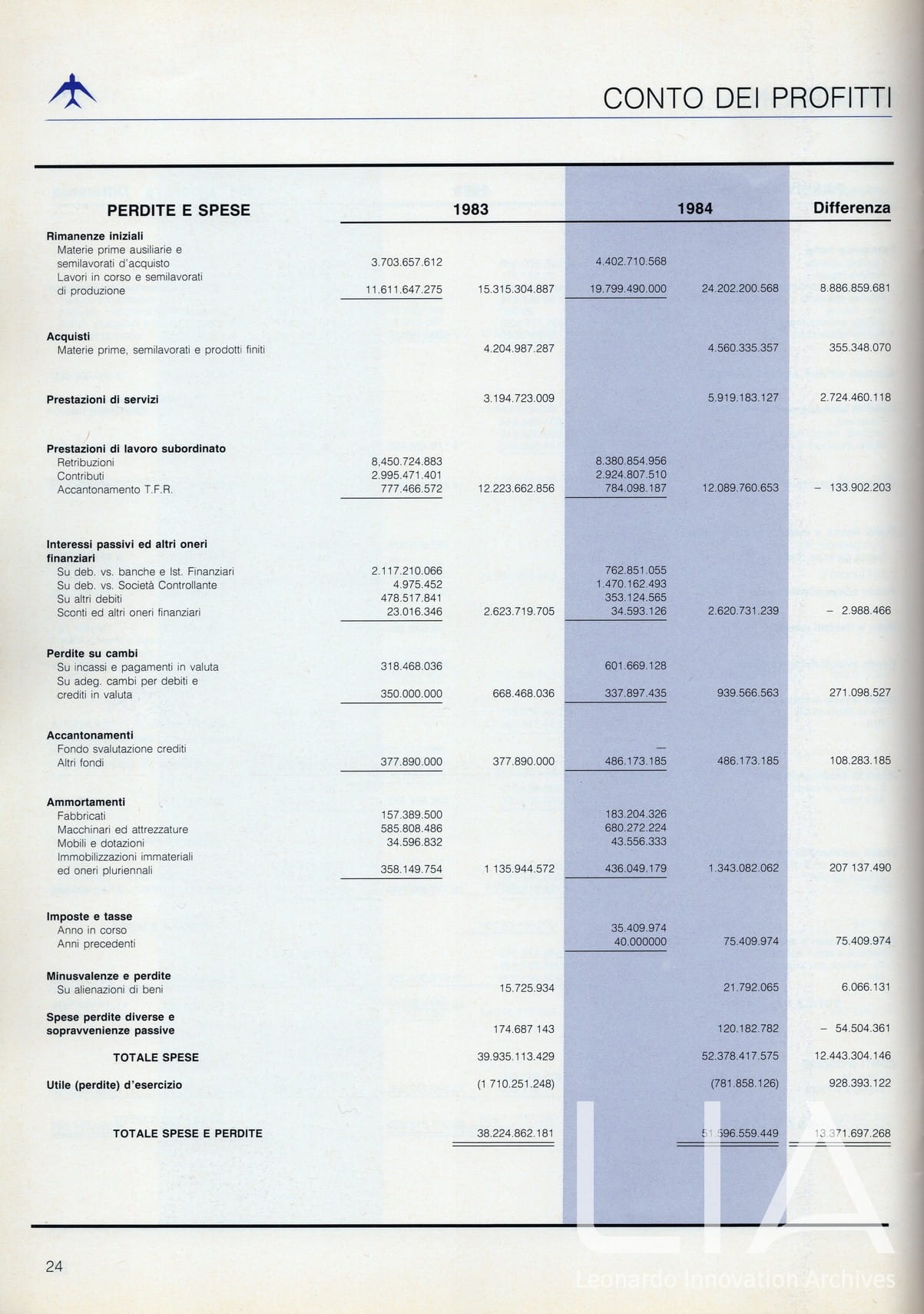 Officine Aeronavali Venezia - relazione bilancio esercizio 1984