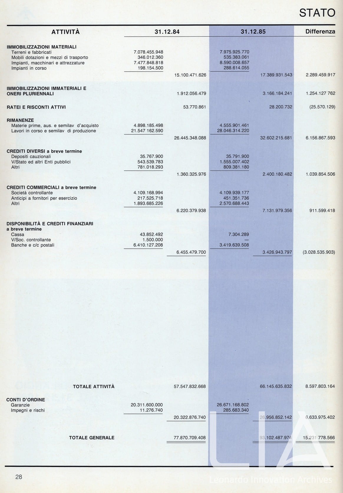 Officine Aeronavali Venezia - relazione bilancio esercizio 1985