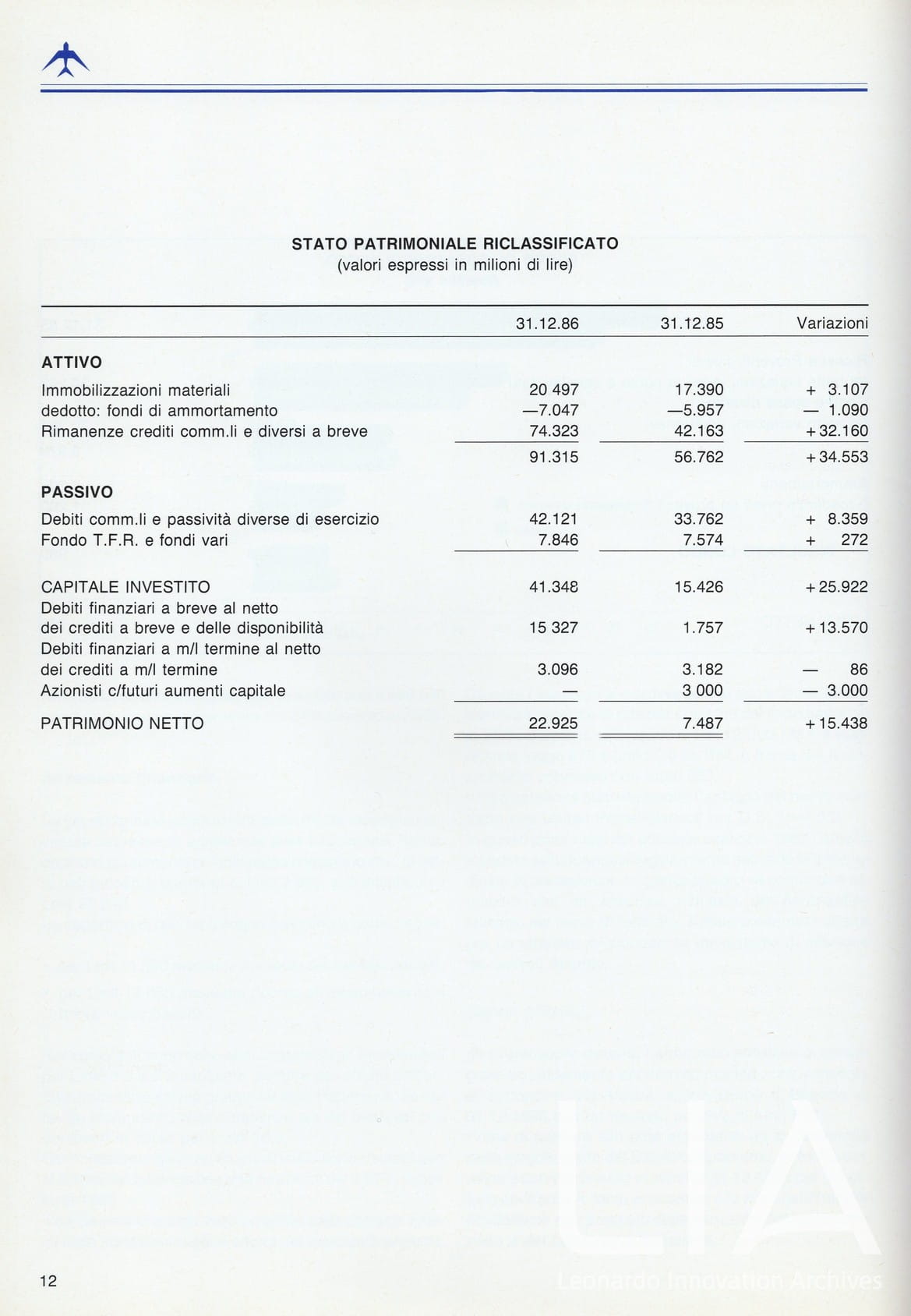 Officine Aeronavali Venezia - relazione bilancio esercizio 1986