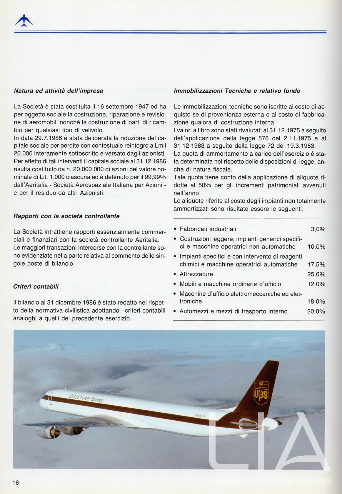 Officine Aeronavali Venezia - relazione bilancio esercizio 1986
