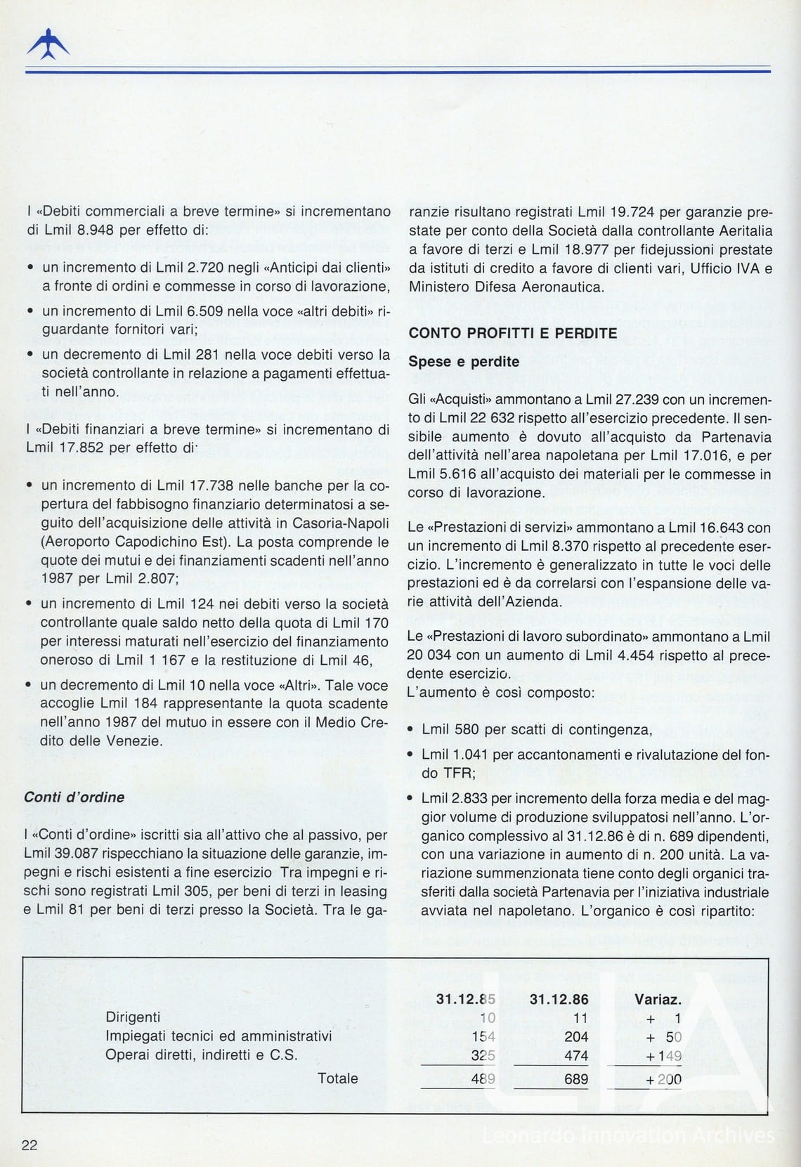 Officine Aeronavali Venezia - relazione bilancio esercizio 1986