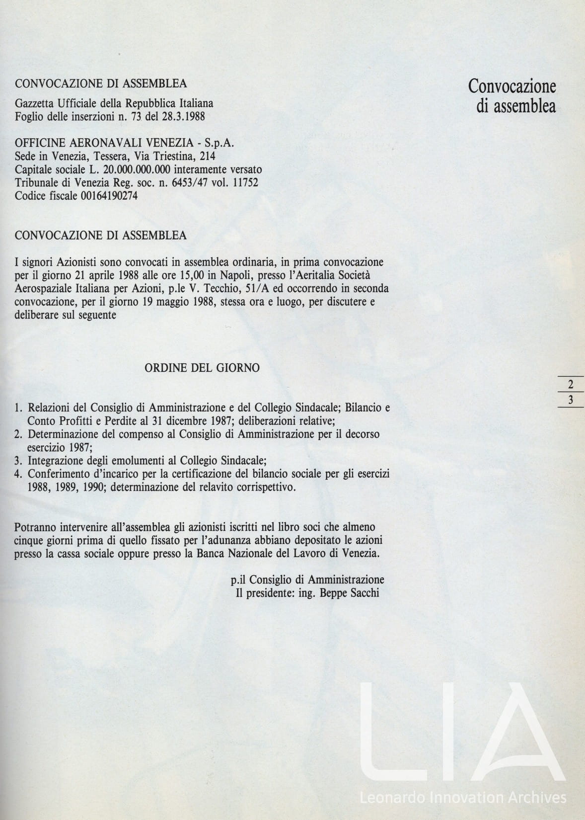 Officine Aeronavali Venezia - relazione bilancio esercizio 1987