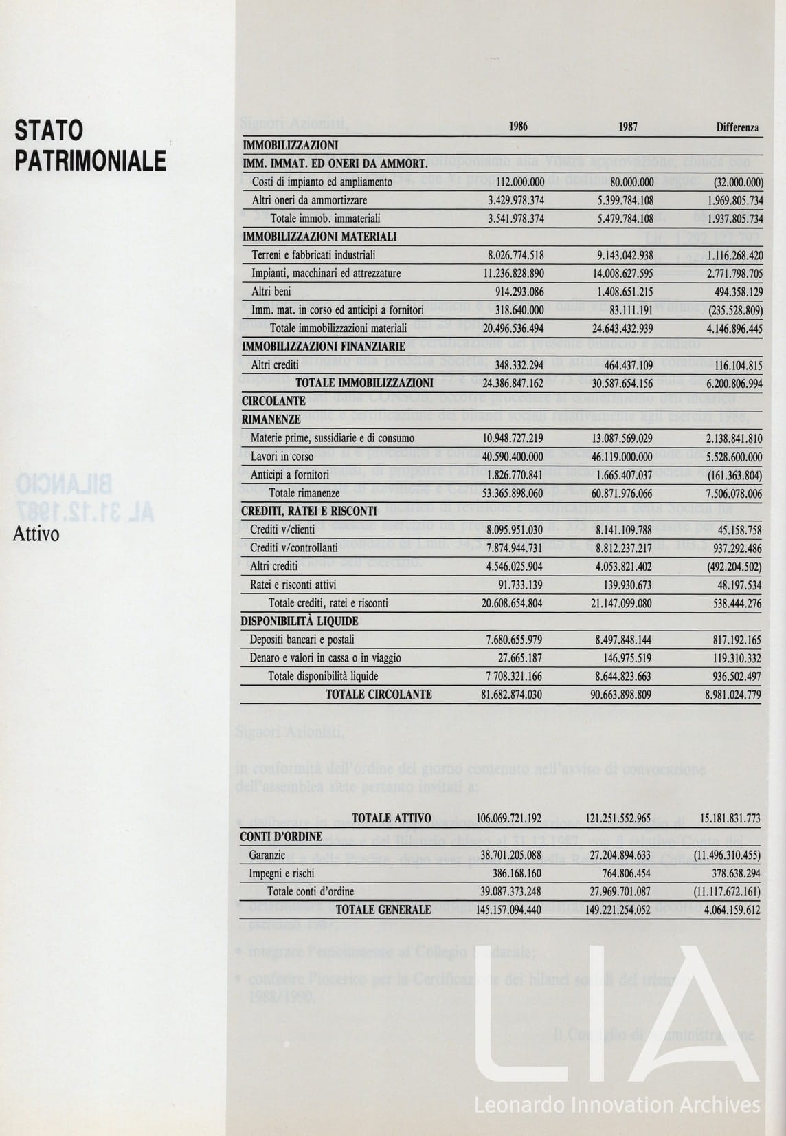 Officine Aeronavali Venezia - relazione bilancio esercizio 1987