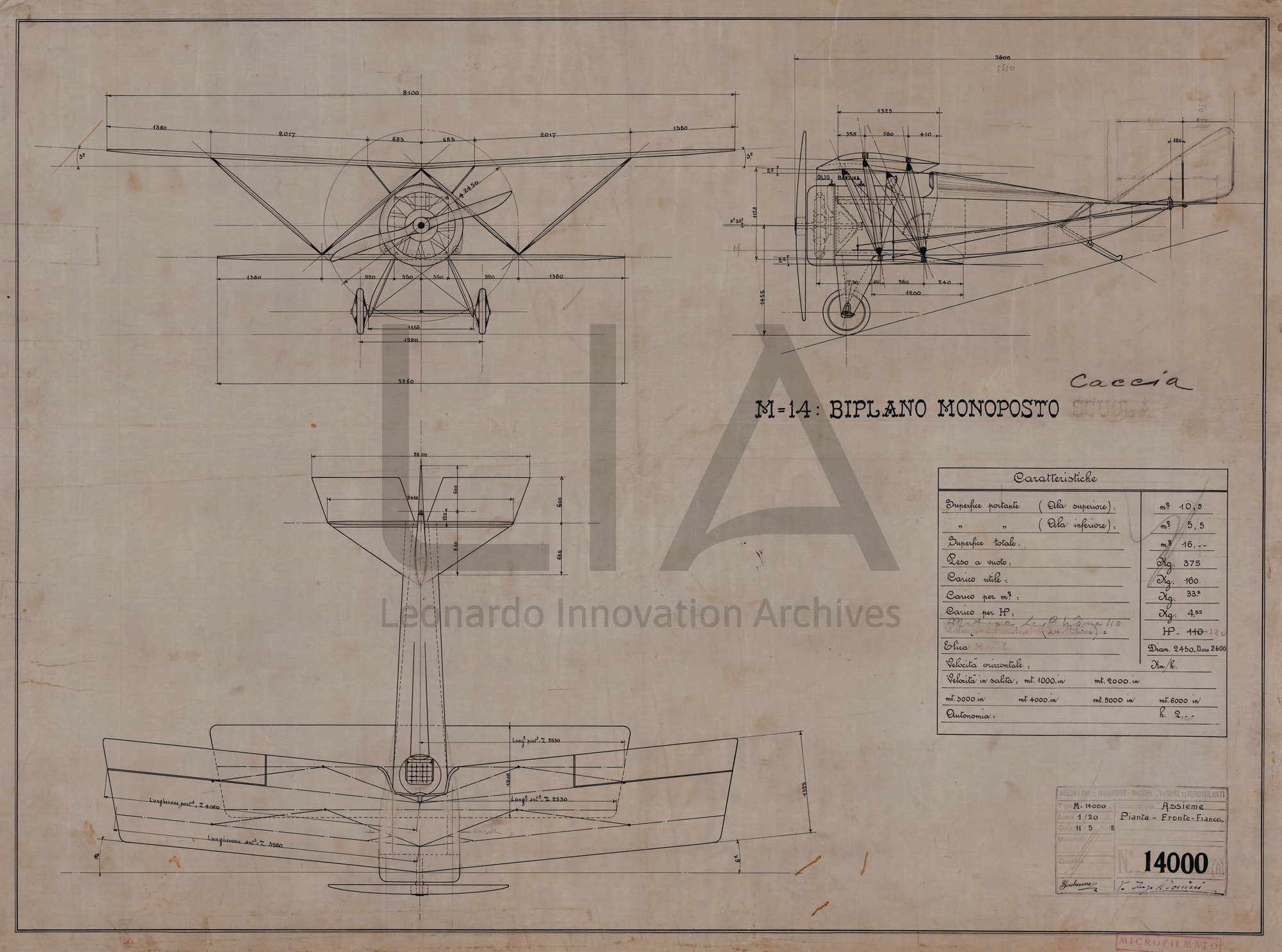 Nieuport Macchi -Biplano monoposto caccia M.14 - trittico