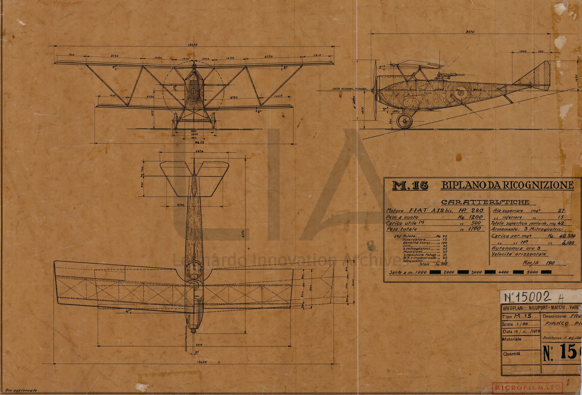 Nieuport Macchi - Ricognitore terrestre veloce M.15 - trittico
