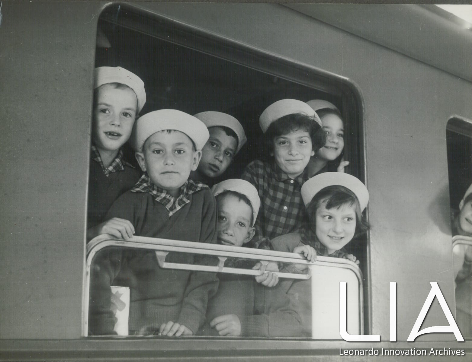 Bimbi affacciati al finestrino del treno
