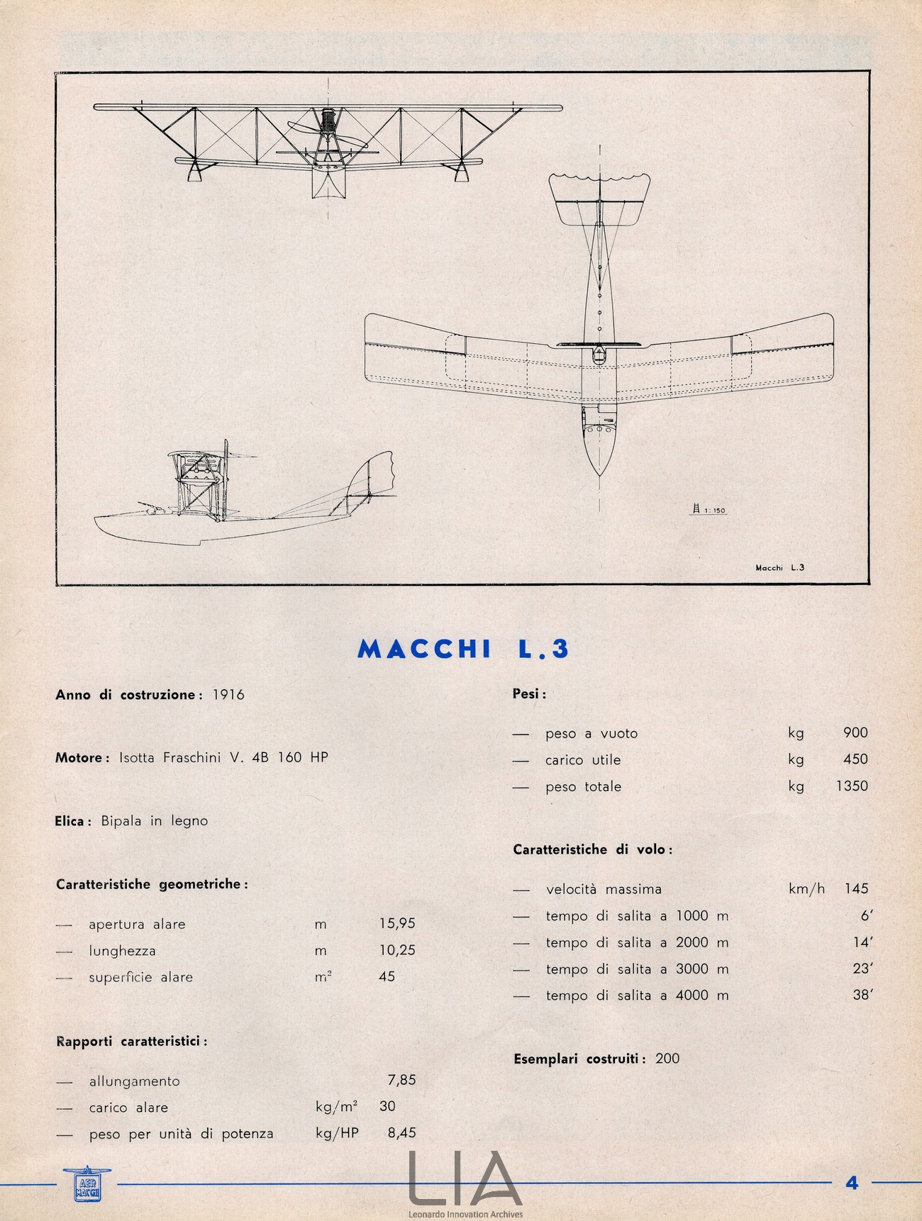 Nieuport-Macchi L.3 - scheda tecnica con disegno del trittico