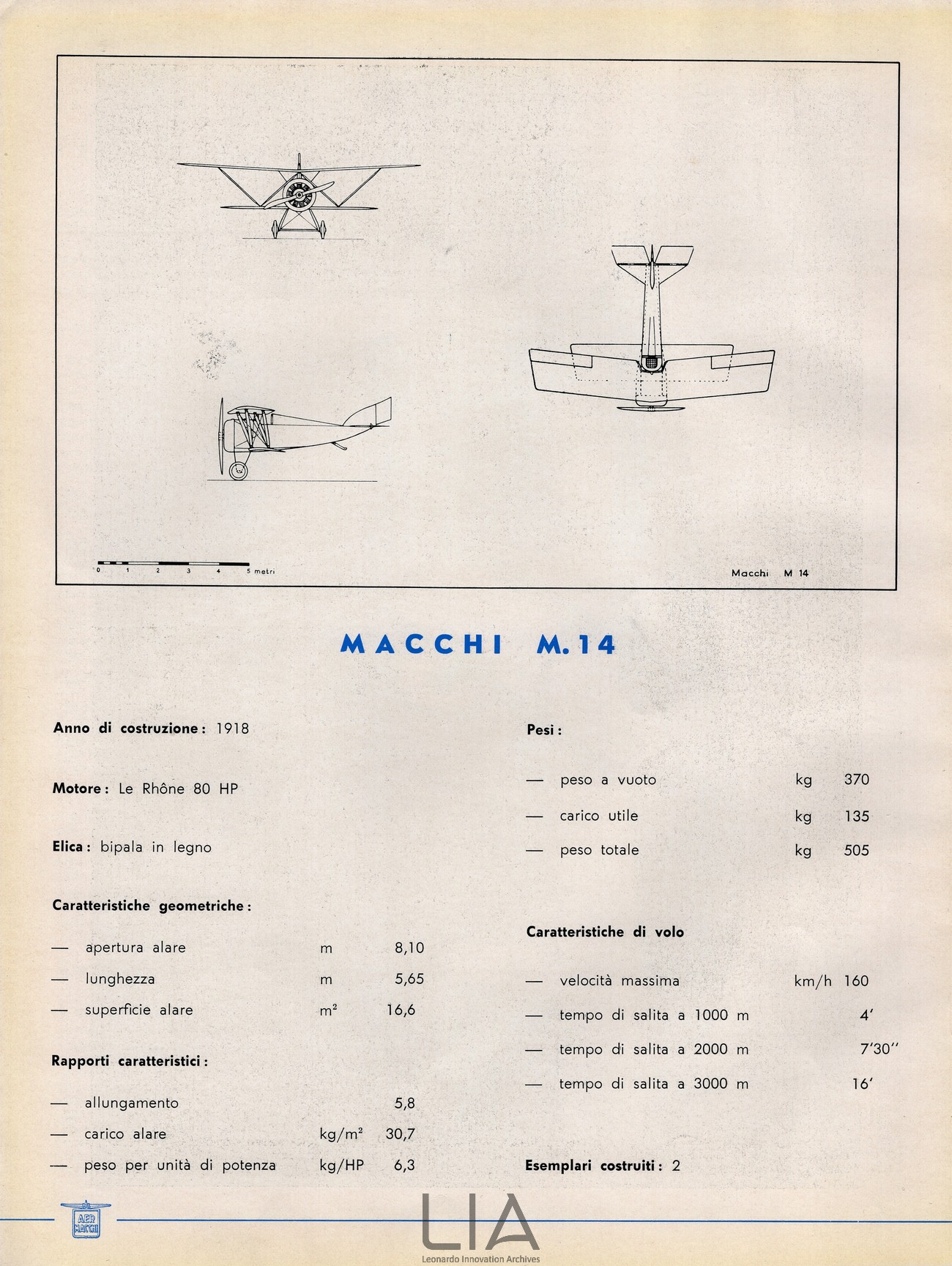 Nieuport-Macchi M.14 - scheda tecnica con disegno del trittico